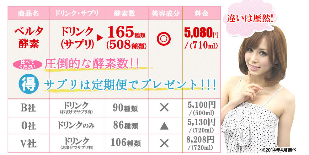 といっても、もちろんベルタ酵素ドリンクタイプも、ほかと比較してこんなに酵素数は多いので