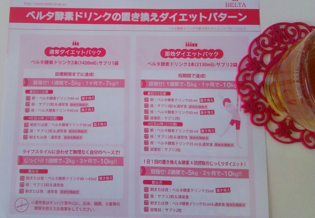 ベルタ酵素の置き換えダイエットパターンが、一緒に届いたリーフレットに詳しく紹介されていたのでご紹介します。